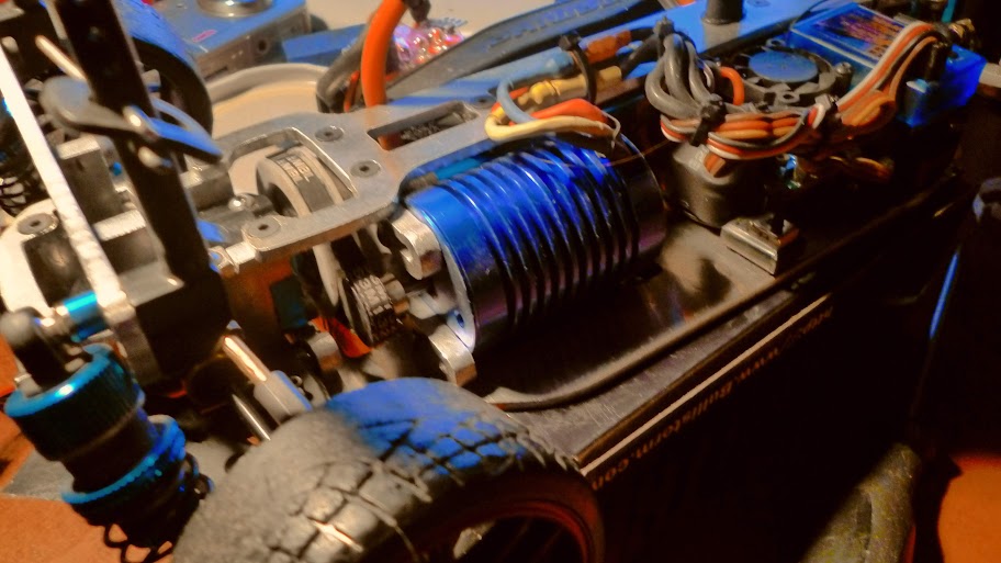 ENROUTE JXR, poulie 40T YOKOMO, poulie 12T SQUARE, courroie 144mm FINGERTECH, entretoise EAGLE RACING modifiée et le spur holder d'origine.